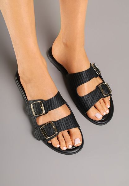 Czarne Klapki Ozdobione Klamrami i Paskami Iffarene