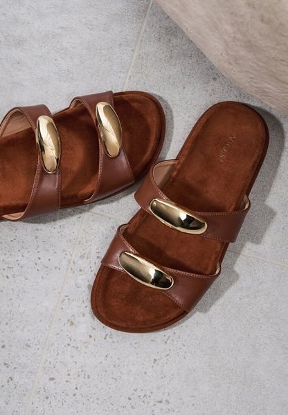 Brązowe Klapki Vices Zdobione Aplikacjami Vomeza