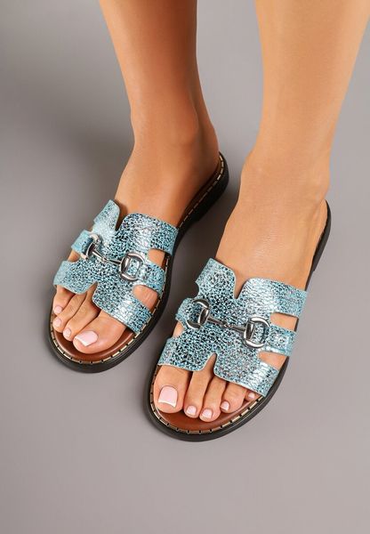 Niebieskie Klapki z Klamrą i Ozdobnymi Wycięciami Arivlis