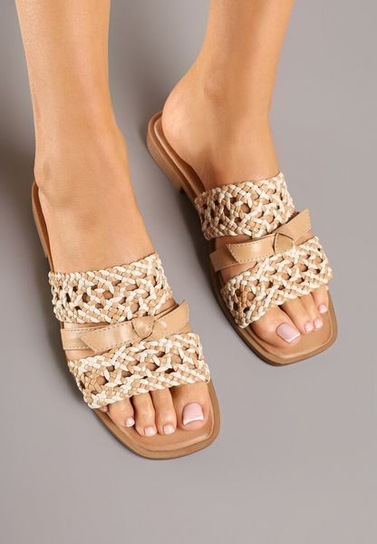 Beżowe Ażurowe Klapki z Ozdobną Aplikacją Korialina