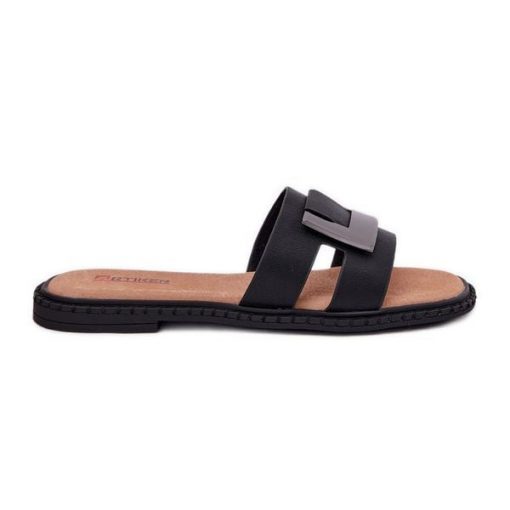 Klapki Damskie Płaskie Z Ozdobnym Detalem Artiker 56C1336 Czarne
