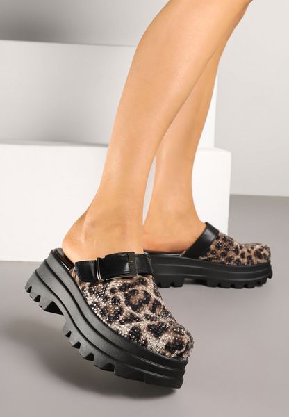 Panterkowe Klapki Typu Chodaki na Tłoczonej Platformie Zdobione Sprzączką Sorelenna