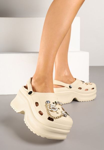 Beżowe Klapki z Pianki na Platformie Ozdobione Łańcuszkiem i Aplikacjami Risalense