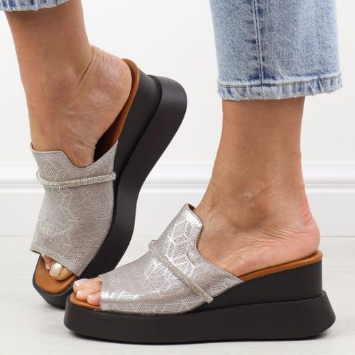 Złote klapki damskie na koturnie M.Daszyński Sa209-2