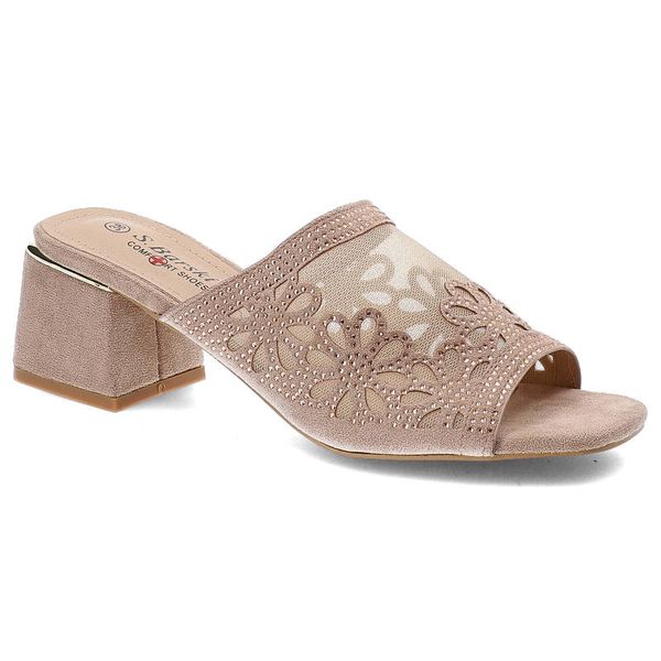 Beżowe Klapki S.Barski Eleganckie Buty Na Obcasie