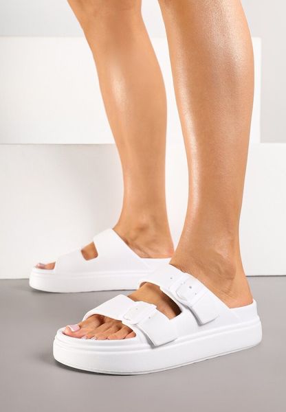 Białe Klapki z Ozdobnymi Klamrami Rettiana