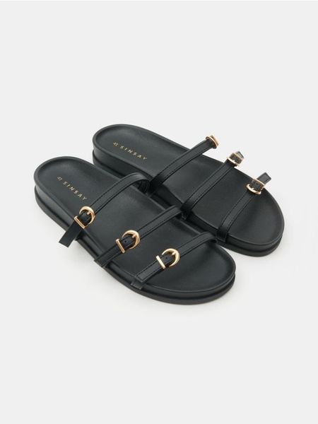 Sinsay – Klapki z potrójnym paskiem i klamrami – czarny –