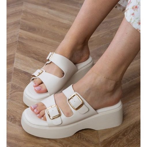 Białe klapki z klamrami na paskach to doskonały wybór dla kobiet ceniących sobie zarówno styl, jak i komfort na co dzień. Model YQ77-15, utrzymany w eleganckim odcieniu Off White, wpisuje się w najnowsze trendy mody, jednocześnie zapewniając wygodę podczas użytkowania.. Klapki charakteryzują się klasycznym fasonem z kwadratowym noskiem, co nadaje im nowoczesnego wyglądu. Wysokość platformy […]