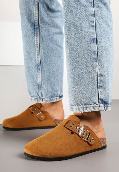 Brązowe Klapki Mule w Stylu Chodaków z Klamrą Lanaris