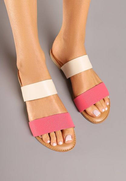 Fuksjowe Casualowe Klapki na Płaskiej Podeszwie z Dwoma Paskami Denelie