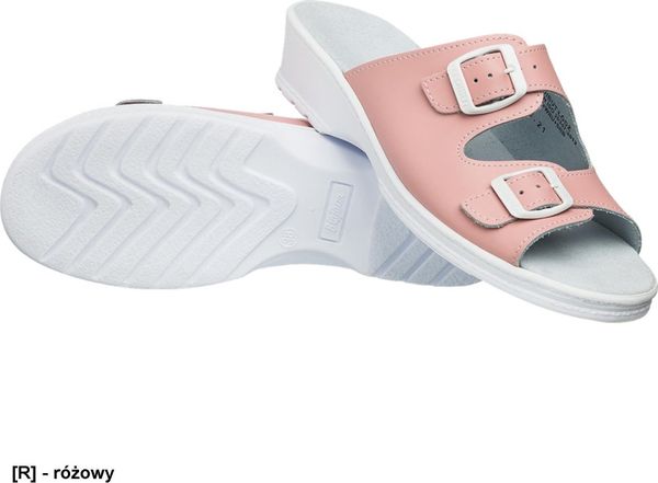 MEDIBUT BMKLA2PAS – klapki damskie na koturnie, cholewka skóra z powłoką ułatwiającą mycie i dezynfekcję – różowy 38