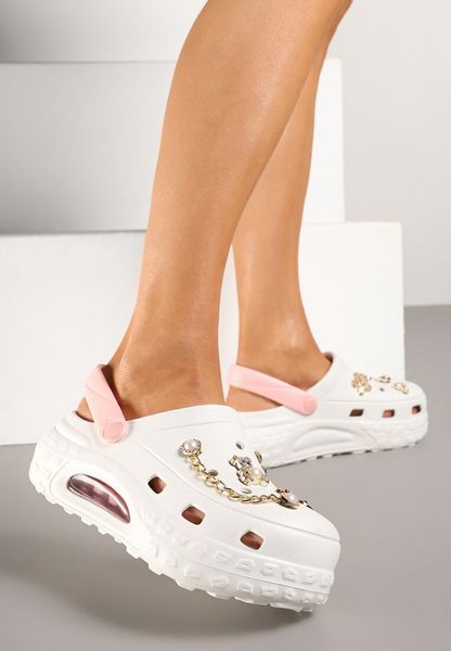 Biało-Różowe Klapki z Aplikacjami 3D i Perełkami Vivesandra