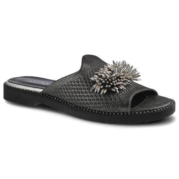 Czarne Klapki Lanqier Damskie Wygodne Buty Letnie