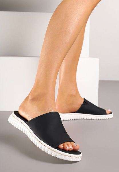 Czarne Klapki Vices z Ekoskóry na Podeszwie ze Żłobieniami Dorovia