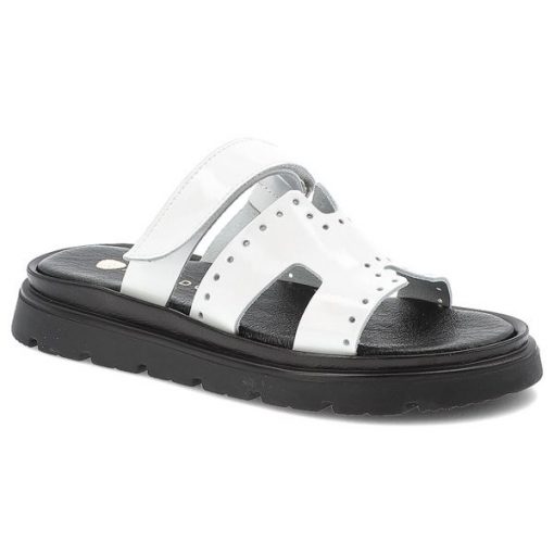 Klapki ARMODO – 40440 Bf.Biały to propozycja, która łączy nowoczesny minimalizm z wygodą na najwyższym poziomie. Wykonane z wysokiej jakości skóry naturalnej lakierowanej w śnieżnobiałym kolorze, przyciągają wzrok subtelnym połyskiem, a także eleganckim wykończeniem. Perforowana cholewka o modnym, geometrycznym kroju zapewnia odpowiednią cyrkulację powietrza, natomiast miękka, profilowana wkładka czy też solidna, czarna podeszwa gwarantują komfort i […]
