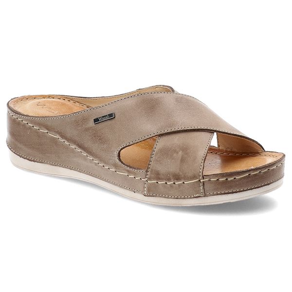 Brązowe Klapki Wasak Skórzane Obuwie Damskie