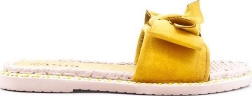 BELLO STAR Klapki zamszowe z kokardą żółte-37