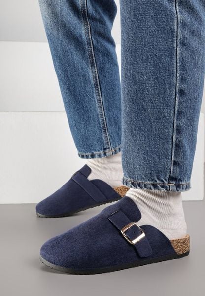 Granatowe Klapki z Ozdobnym Paskiem i Klamrą Calevelis