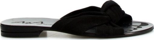 AGA Klapki z kokardą skórzane czarne Aga-38