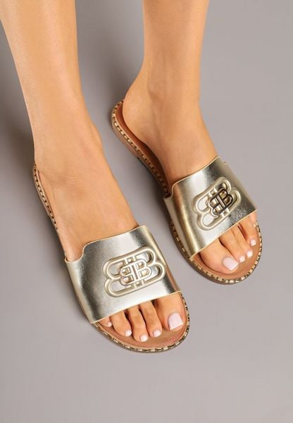 Złote Klapki w Eleganckim Stylu Zdobione Aplikacją Miralinea