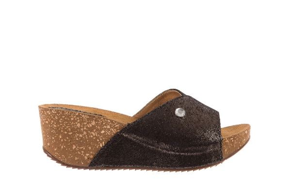 Klapki na korkowym koturnie marki Bayla w kolorze czarnym z mieniącym się srebrem z ozdobnym kryształkiem z lewej strony na cholewce. Klapki są lekkie, wykonane z materiałów najwyższej jakości. Niezwykle lekki i niski koturn pozwoli na wygodne użytkowanie buta w ciągu całego dnia.Te buty to doskonały model dla osób ceniących praktyczne rozwiązania, wygodę oraz elegancję […]