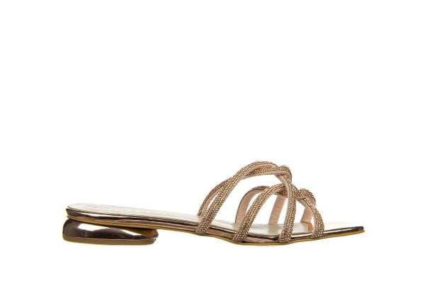 Szampańskie Płaskie Klapki z Imitacji Skóry Ozdobione Koralikami i Perłami Farnela