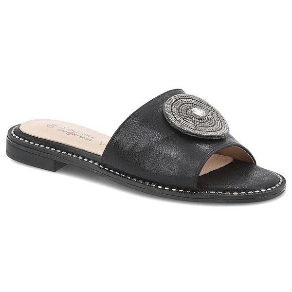 Klapki damskie S. Barski, eleganckie z eko skóry na płaskim obcasie ze sprzączką, czarne, KV51-013