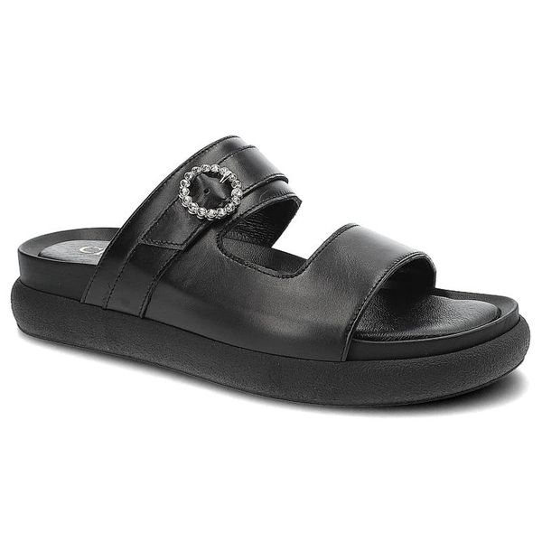 Klapki damskie Chebello, cholewka z gładkiej skóry naturalnej z szerokimi paskami i ozdobną klamrą gładka wkładka oraz grubsza jednolita podeszwa, cz
