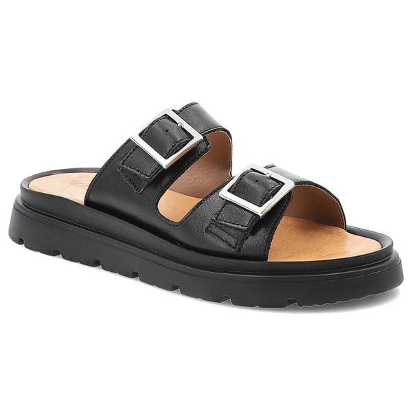 Klapki damskie Wasak, skórzane na platformie w klasycznym stylu z klamrami, czarne, 756