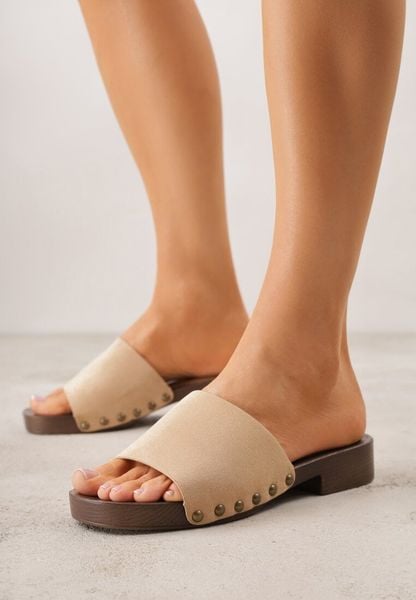 Beżowe Klapki z Nitami Lephiaphe
