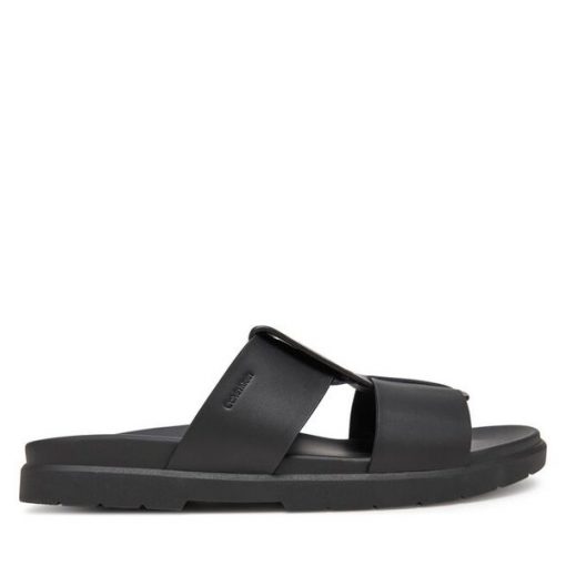 Klapki Calvin Klein Lug Sandal Double T Lth HM0HM01734 Czarny