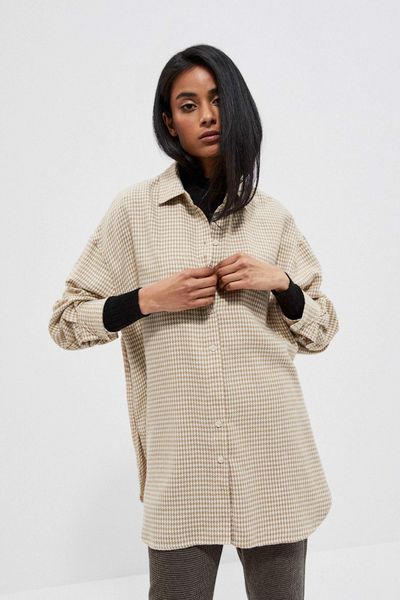 80%POLIESTER, 20%BAWEŁNA 80%POLIESTER, 20%BAWEŁNA, KOSZULA, beżowy, ecru, pepitka, POLIESTER, guziki, długi rękaw, Dekolt_koszule Kołnierzyk, guziki