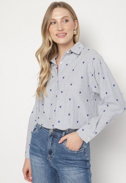 Niebieska Bawełniana Koszula w Paski i Serduszka Fennissa