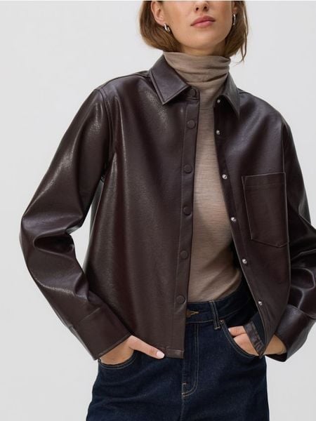 Koszula z imitacji skóry – ciemnobrązowy