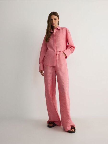 Różowy Komplet z Wiskozy w Stylu Oversize Szerokie Spodnie i Luźna Koszula na Guziki Natinne