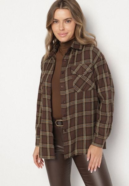 Brązowa Koszula w Kratę z Bawełny i Wiskozy Aurellea