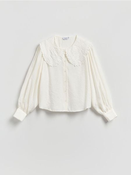 Koszula z dekoracyjnym kołnierzem – złamana biel