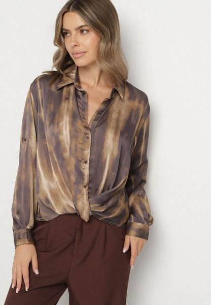 Brązowa Koszula z Drapowaniem u Dołu i Podpinanymi Rękawami Estiria
