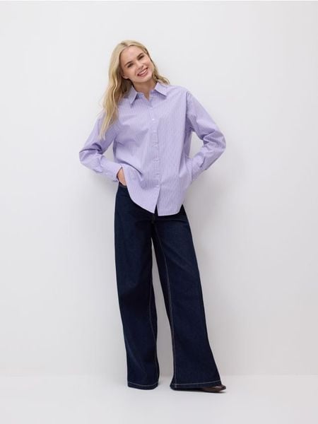 Koszula o swobodnym kroju, wykonana z tkaniny z bawełną.