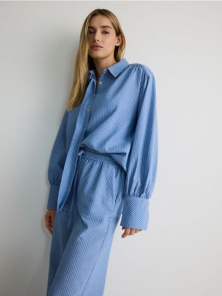 Koszula oversize w piżamowym stylu – niebieski