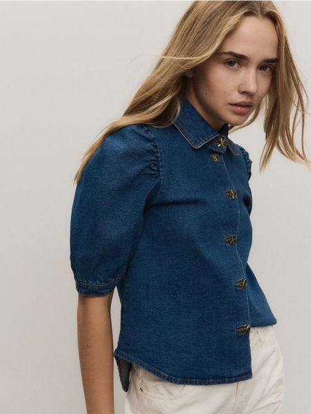 Jeansowa koszula z ozdobnymi guzikami – niebieski