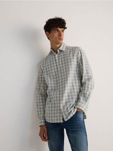 Koszula o regularnym kroju, wykonana z bawełnianej tkaniny z dodatkiem lnu.