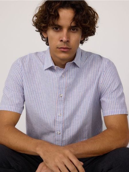 Koszula o regularnym kroju, wykonana z bawełny i lnu.