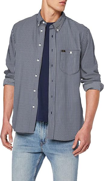 LEE RIVETED SHIRT RELAXED FIT MĘSKA KOSZULA MATERIAŁOWA W PASKI WASHED BLUE L66ITPLR 112116464