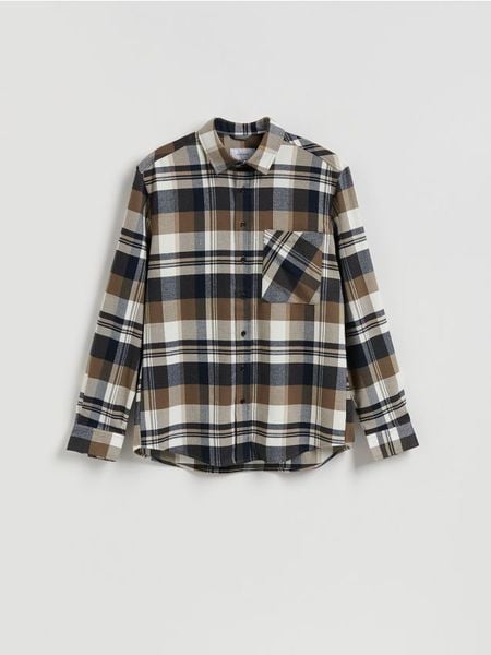 Koszula o regularnym kroju, wykonana z tkaniny w kratę.