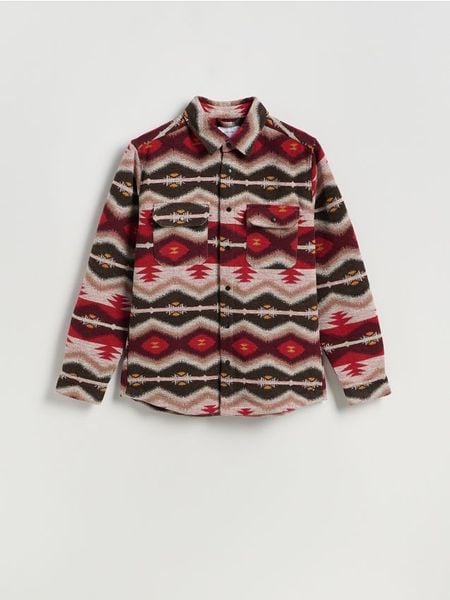 Koszula o swobodnym kroju, wykonana z grubej tkaniny.