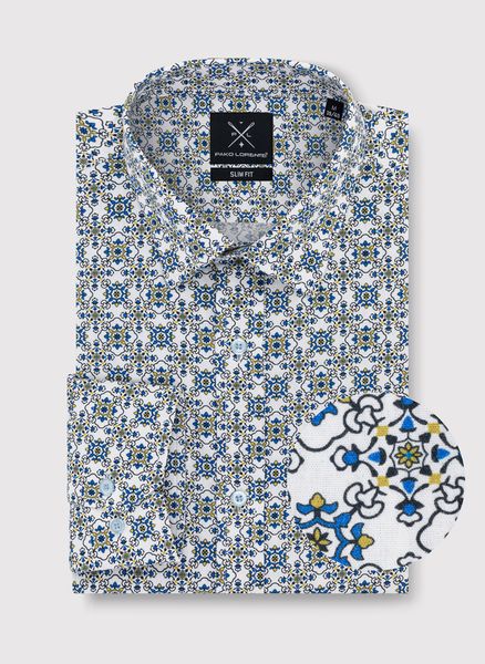 Koszula w kolorze białym w oryginalny wzór – Pako Lorente. Biała koszula męska o fasonie SLIM FIT. Wzorzysta koszula na co dzień. Męska koszula we wzory.