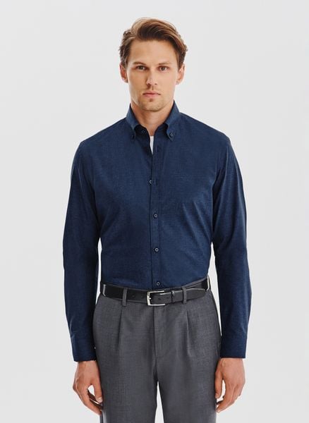 Granatowa koszula melanż – Pako Lorente. Koszula z długim rękawem. Melanżowa koszula bawełniana. Skład: 100% bawełna. Fason: Slim Fit.