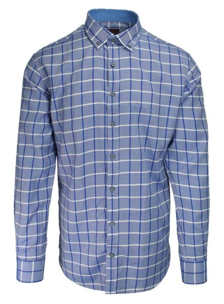 Koszula Wizytowa, Niebieska w Kratkę, z Długim Rękawem, Bawełniana, Prosty Krój -RAVANELLI