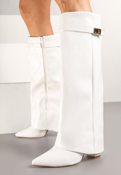 Białe Kozaki z Szeroką Cholewką i Szpiczastym Noskiem Jazmynn